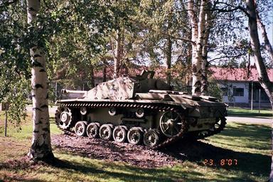 | Keywords: StuG3 assault gun in Oulu 2007 b.jpg en A StuG III assault gun model Ausf G MIAG-built in the former barracks area of the now disbanded Pohja Brigade in the Hiukkavaara district of Oulu Finland 2007 fi StuG III -rynnäkkötykki Ausf G valmistaja MIAG entisellä Pohjan Prikaatin kasarmialueella Oulun Hiukkavaarassa Own 2007-08 Methem Mikko J Putkonen Sturmgeschütz III Ausführung G in the Pohja Brigade barracks 2007 in Oulu August 2007 in Finland | ||||