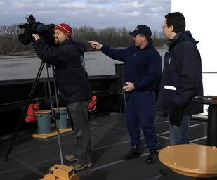 | Keywords: Sturgeon Bay Media Escort DVIDS1106883.jpg en Lt Scott Rae Coast Guard Cutter Sturgeon Bay's commanding officer explains ice breaking operations to reporter Steven Ference and camera man Shawn Hillaboe from Capital 9 News in Albany during an area familiarization trip in preparation for ice operations on the Hudson River Dec 18 2008 The Sturgeon Bay homeported in Bayonne N J also conducts search and rescue pollution response and security missions in New York's waterways 2008-12-18 https //www dvidshub net/image/1106883 1106883 2013-12-12 12 43 ALBANY NY US PD-USGov Sturgeon Bay tugboat 1988 Images from DoD uploaded by Fæ |