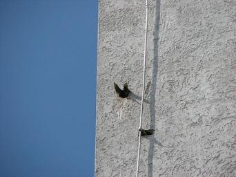 | Keywords: Sturnus vulgaris, Bystrc 01.JPG en Common starling juveniles looking out from a nest built in a hole in the polystyrene isolation on the wall of an eight floor communal house The nest is in the height of about 13 metres own own photo HTO 2009-05-18 Sturnus vulgaris nests |