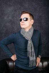 Keywords: style fashion male image hairstyle image scarves glasses photoshoot