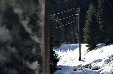 | Keywords: Sublimation At Hyak WA 2.JPG en Example of water sublimation occuring as a result of sun striking ice on powerline poles along the Iron Horse State Park Trail in Hyak Washington United States The sublimation in this photo is observed as fog rising from the powerline poles Upon closer observation ice is evident as a thin shiny layer on an otherwise dark colored powerline pole The time was 11 03AM and temperature was just above freezing When the sun is at a higher angle in the sky such as the case in this photo it travels through less atmosphere and has a greater energy transmission to the ice With enough energy imparted to the ice a solid state of matter in sublimation the ice will skip the liquid state and transform directly to the gaseous state own Jrg1000 2011-01-22 47 22 5 13 N 121 23 39 798 W alt 785_source exif_heading Cc-zero Chemical processes Phase changes |