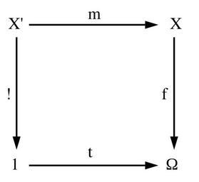 Keywords: SubobjectPullbackTopos.svg Subobject pullback diagram for topos article Own 2007-09-26 Vaughan Pratt Commutative squares