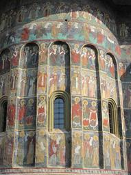 | Keywords: Sucevita murals 2010 21.jpg Suceviţa Monastery Romania The church is one of the Painted churches of northern Moldavia listed in UNESCO's list of World Heritage sites own photo 14 d'Août 2010 Man vyi Own work all rights released Public domain Suceviţa murals Murals and icons on the exterior of churches Windows in Romania |