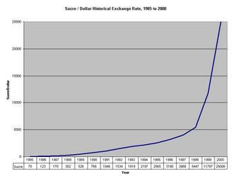 | Keywords: Sucre+Dollar+Historical+Exchange+Rate+1985+2000.png Historical exchange rates between the ecuadorian Sucre ECS and the US-Dollar USD Based on CIA World Factbook 1990 2002 2006-07-17 Ma_xyz Public Domain Money of Ecuador United States dollar exchange rate charts |