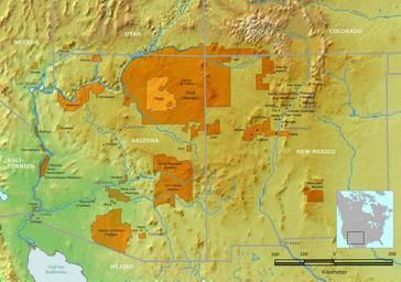 | Keywords: Südwesten01.png Indian Reservations of the South West German version Own work by Nikater submitted to the public domain Background map courtesy of Demis www demis nl 2007-09-28 User Nikater PD-Demis Maps of Arizona Maps of New Mexico Maps of the Navajo Nation Indian reservations in Arizona 02 Indian reservations in New Mexico 02 Mojave Desert Sonoran Desert Maps of regions of Arizona Colorado Plateau Colorado Plateau Navajo section Colorado Plateau region of Arizona Colorado Plateau region of Utah Colorado Plateau region of New Mexico Colorado Plateau region of Colorado Canyon Lands of Utah Canyon Lands of Arizona High Plateaus section of Arizona Grand Canyon-Parashant National Monument High Plateaus section of Utah Kanab Creek Kanab Plateau Kaibab Plateau Paria Plateau Maps of the Grand Canyon Virgin River Virgin Valley Virgin Mountains Escalante Desert Black Mountains Utah Parowan Valley Sevier Plateau Escalante Mountains Boulder Mountain Utah Henry Mountains La Sal Mountains San Rafael Desert Mountain Home Range Pine Valley Utah Wah Wah Mountains Wah Wah Valley San Francisco Mountains Utah Little Colorado River Lower Colorado River Valley Black Mountains Arizona Gila River Yuma Arizona Mogollon Rim Arizona transition zone Madrean Sky Islands Quechan White Mountains Arizona Verde River Arizona Maria fold and thrust belt Whipple Mountains Newberry Mountains Nevada McCullough Range Eldorado Valley Eldorado Mountains Piute Range Piute Valley New Mexico Bootheel |
