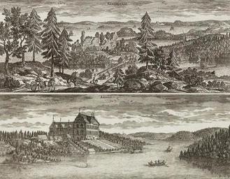 | Keywords: Suecia 1-093 ; Almarestäket Arnöö.jpg sv Almerstäk och Arnöö kopparstick av Adam Perelle 1670-1674 Den översta bilden visar de då ännu ganska höga ruinerna av de medeltida ärkebiskoparnas fäste Almarestäket http //www kb se/samlingarna/Kartor-bilder/Suecia-antiqua/forsta-bandet/almarestaket-biskops-arno Kungliga biblioteket kopparstick av Adam Perelle 1670 1674 Suecia antiqua et hodierna - volume 1 Almare-Stäkets borg Biskops-Arnö PD-old | ||||