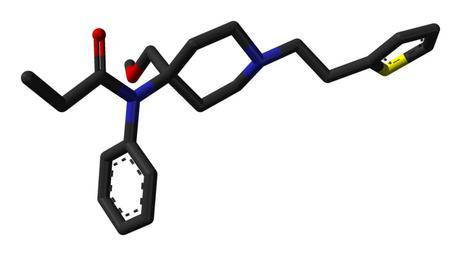 | Keywords: Sufentanil-xtal-3D-sticks-skeletal-B.png Stick model of the sufentanil molecule in the crystal structure X-ray diffraction data from cite journal N- 4- Methoxymethyl -1-2- 2-thienyl ethyl-4-piperidinyl -N-phenylpropanamide sufentanil O M Peeters N M Blaton and C J De Ranter Acta Crystallographica Section B 1979 35 4 999-1001 doi 10 1107/S0567740879005409 Own 2008-05-04 Ben Mills Benjah-bmm27 Images by Ben Mills Sufentanil | ||||