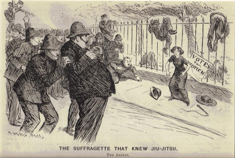 | Keywords: Suffragette-that-knew-jiujitsu.jpg The Suffragette that Knew Jiu-Jitsu The Arrest Edith Margaret Garrud http //www bartitsu org/index php/tag/suffragettes/ Arthur Wallis Mills 1878 1940 1910-06-06 Public domain Human author still alive when published in the UK Published in Punch Magazine in 1910 and The Wanganui Chronicle maybe more <gallery> File Bhgarrud jpg File Punch6july1910 jpg </gallery> PD-old-auto-1923 1940 1910 cartoons Caricatures of police officers Caricatures of suffragettes Jujutsu Martial arts in art Punch magazine cartoons |