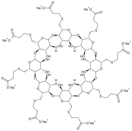 | Keywords: Sugammadex sodium.svg Structural diagram of sugammadex sodium Created using http //www acdlabs com/download/chemsk html ACD/ChemSketch 10 0 and Inkscape Own 2007-01-09 Fvasconcellos Image Sugammadex sodium 3D front view png Image Sugammadex sodium 3D three quarters view png ”space-filling models Antidotes Polysaccharides Sodium salts of organic compounds Thioethers |