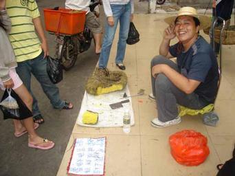 | Keywords: Sugar sold as honey 004.jpg en Formed cane sugar with honeysuckle fragrance and colouring sold on streetsides as underground honey Villagers earn money using this scam in large cities on the island Image taken in Haikou Hainan China Own Anna Frodesiak 2010-04-15 Files by User Anna Frodesiak Fake honey Culture of Hainan Street vendors in Haikou |