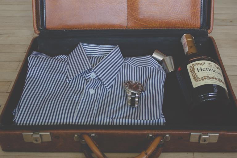 Keywords: suitcase shirt wine watch luggage travel baggage vacation trip traveling