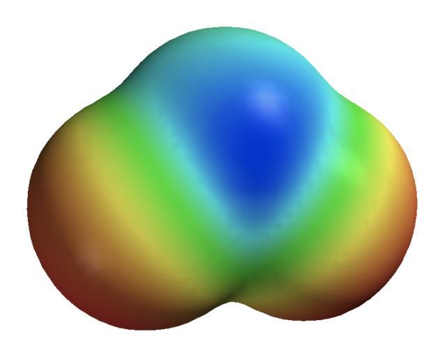 Keywords: Sulfur-dioxide-elpot.png Electrostatic potential surface of sulfur dioxide SO<sub>2</sub> Generated with Spartan ST Own 2008-05-04 Ben Mills Benjah-bmm27 Images by Ben Mills Molecular electrical potential surfaces Sulfur dioxide