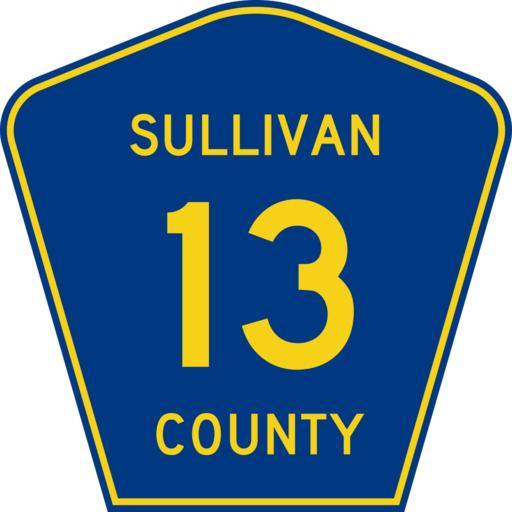 | Keywords: Sullivan County 13.svg 450 mm by 450 mm 18 in by 18 in county shield made to the specifications of the 2004 edition of Standard Highway Signs sign M1-6 Uses the Roadgeek 2005 fonts United States law does not permit the copyrighting of typeface designs and the fonts are meant to be copies of a U S Government-produced work anyway Own 2009-06-27 Carpetmaster101 Own work all rights released Public domain Diagrams of county route markers with county name 0013 13 number | ||||
