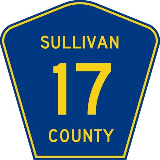 | Keywords: Sullivan County 17.svg 450 mm by 450 mm 18 in by 18 in county shield made to the specifications of the 2004 edition of Standard Highway Signs sign M1-6 Uses the Roadgeek 2005 fonts United States law does not permit the copyrighting of typeface designs and the fonts are meant to be copies of a U S Government-produced work anyway Own 2009-06-27 Carpetmaster101 Own work all rights released Public domain Diagrams of county route markers with county name 0017 17 number | ||||