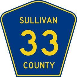 | Keywords: Sullivan County 33.svg 450 mm by 450 mm 18 in by 18 in county shield made to the specifications of the 2004 edition of Standard Highway Signs sign M1-6 Uses the Roadgeek 2005 fonts United States law does not permit the copyrighting of typeface designs and the fonts are meant to be copies of a U S Government-produced work anyway Own 2009-06-27 Carpetmaster101 Own work all rights released Public domain Diagrams of county route markers with county name 0033 33 number | ||||