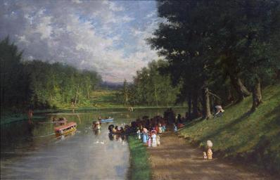| Keywords: Summer Afternoon along the River, Rhode Island by Frederick Stone Batcheller.jpg en Summer Afternoon along the River Rhode Island by Frederick Stone Batcheller oil on canvas 36 ¼ x 54 ¼ inches 1889 Vose Galleries Boston Massachusetts Frederick Stone Batcheller 1889 PD-old-auto 1889 DEFAULTSORT Batcheller Frederick Stone Frederick Stone Batcheller | ||||