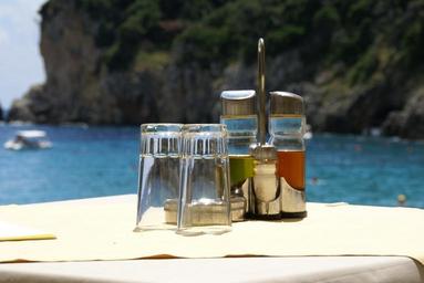 Keywords: summer beach oil vinegar salt pepper coast restaurant terrace glass sea