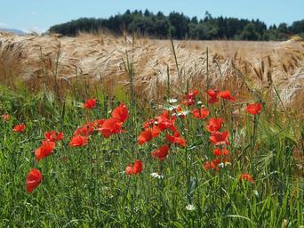 Keywords: summer cereals landscape poppies agriculture field nature spike
