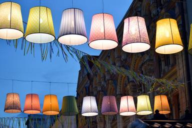 Keywords: summer evening night downtown moscow city urban scene fest festival celebration ice cream lamps colorful beautiful illuminated glowing walking street people outdoor european architecture building dark blue sky russia russian federation city center center shopping district decorations creative artsy ornaments nice festive