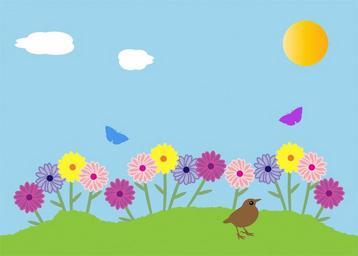 Keywords: summer garden sunshine flower flowers colorful beautiful bird butterfly butterflies green grass blue sky clouds sun art