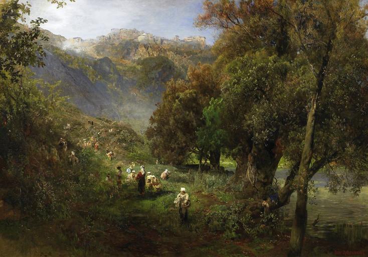 | Keywords: Summer landscape on the banks of the Alban lake Oswald Achenbach.jpg Artwork Creator Oswald Achenbach Sommerlandschaft an den Ufern des Albaner Sees oil canvas cm 102 145 http //www van-ham com/datenbank-archiv/datenbank/oswald-achenbach/colli-albani-sommerlandschaft-an-den-ufern-des-albaner-sees html Van Ham Kunstauktionen object history credit line Signed at lower right Osw Achenbach accession number http //www citadel51 ru/cat_pages/1920cent1-10 html citadel51 ru PD-old-100 Paintings by Oswald Achenbach Lake Albano in art 19th-century landscape paintings Images from Van Ham Kunstauktionen Castel Gandolfo in art |