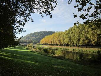 Keywords: river blue riverside outdoor sunlight tree nobody natural green spring cloud vivid view