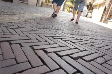 Keywords: summer legs barefoot city herringbone stones away road netherlands holland