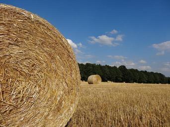 Keywords: summer straw field landscape harvest agriculture village clouds fields poland meadow view yellow sky