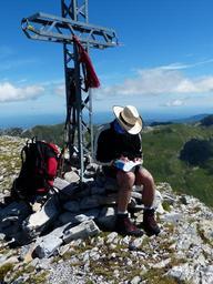 Keywords: summit cross wanderer summit stormer entry summit book sunny cima della saline mountain summit cross viewpoint alpine maritime alps italy saline view distant view foresight outlook