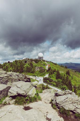 Keywords: summit mountain nature forest clouds sky view summit cross rock mountains landscape stones hiking cross path away hill bavarian forest great arber arber