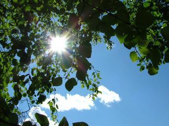 Keywords: sun branch nature green blue sunny clouds sky branches tree sunshine finnish summer