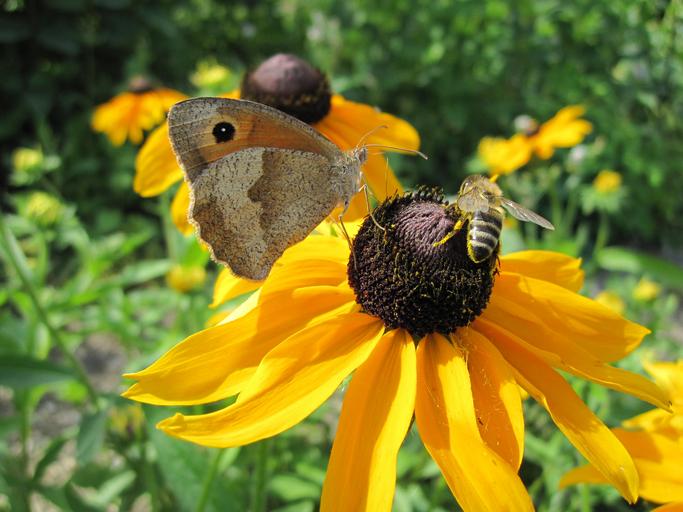 Keywords: sun flower bee butterfly close