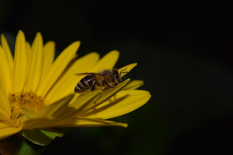 Keywords: sun flower bee night photograph close yellow blossom bloom departure start insect nature postcard greeting card map