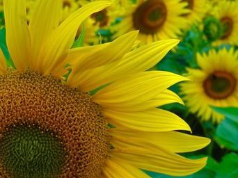 Keywords: sun flower blossom bloom summer yellow petals bees field of flowers