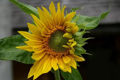 Keywords: sun flower blossom bloom plant wood fence yellow close petals yellow flower