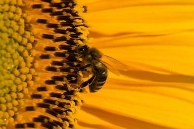 Keywords: sun flower blossom bloom summer yellow bee close macro nature pollen sprinkle nectar