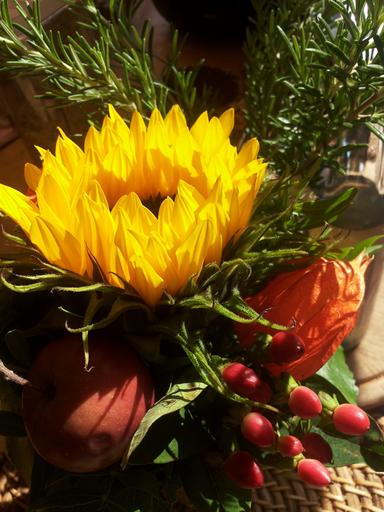 Keywords: sun flower bouquet autumn flowers autumn decoration colorful yellow sunny decoration floristry late summer thanksgiving
