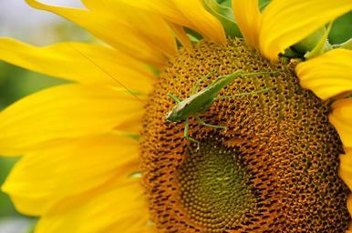 Keywords: sun flower grasshopper plant yellow green bright color nature fresh outdoor field garden summer natural