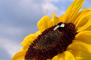 Keywords: sun flower hummel blossom bloom summer yellow helianthus insect nature pollination close pollen macro sunny