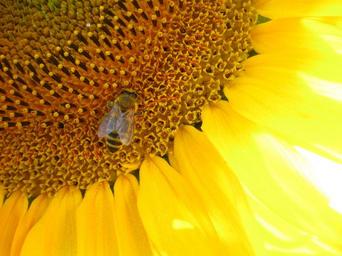 Keywords: sun flower yellow bee summer flower blossom bloom plant close green nature garden sky honey bloom landscape pollen nectar sun vibrant color sunny beautiful
