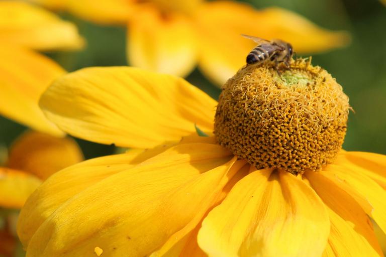 Keywords: sun hat blossom bloom insect bee yellow flower garden