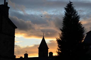 Keywords: sun red night evening sky blue tree background greeting cards clouds