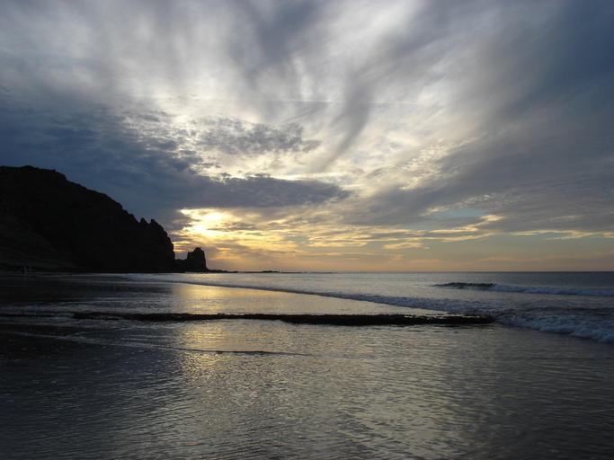 Keywords: sun rising sea portugal light clouds sky rock