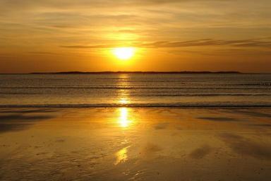 Keywords: sun sea beach sunset gold yellow clouds evening sky back light reflection