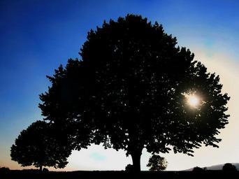Keywords: sun setting sunset atmosphere mood evening grass grasses reed ambience tree blatter bush trees bushes hedge autumn sky nature fog outback shrubs