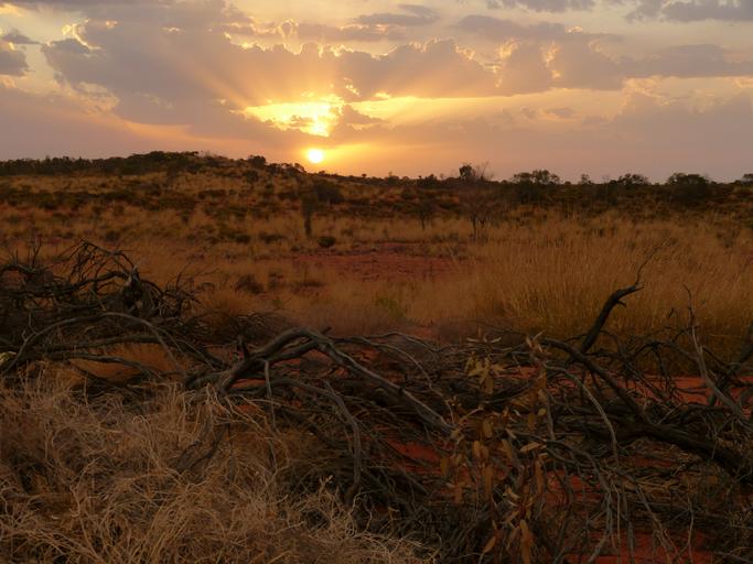 Keywords: sun sunrise clouds mood sunbeam light morning australia outback landscape nature steppe road branch