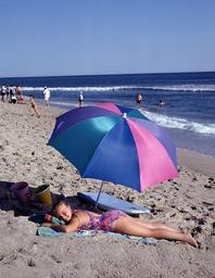 Keywords: sunbather beach sand sea shore coast umbrella girl relaxation sun waves tanning sunbathing vacation sunny alabama usa