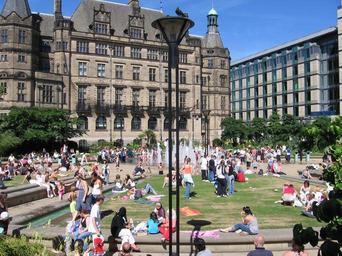 Keywords: Sunbathers, Sheffield centre.JPG en Sunbathers Sheffield centre 2006-07-15 10 56 43 own PookieFugglestein cc-zero Uploaded with UploadWizard Peace Gardens Sheffield