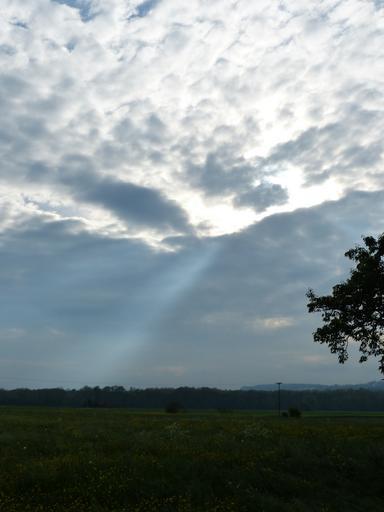 Keywords: sunbeam clouds sky breakthrough nature landscape