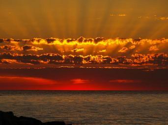 Keywords: sunbeam sunset water clouds
